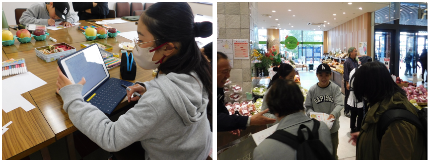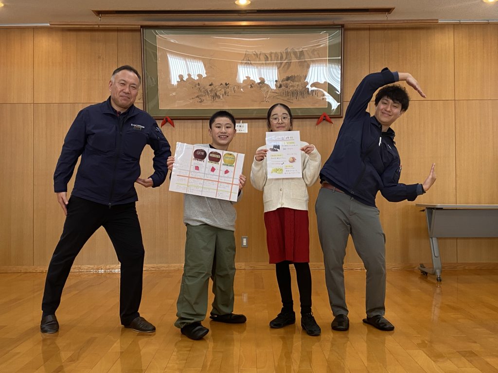 今年の取り組みテーマは『地域貢献』。小学生2名が当社事業を通じて長野県産フルーツを紹介するポップを制作、